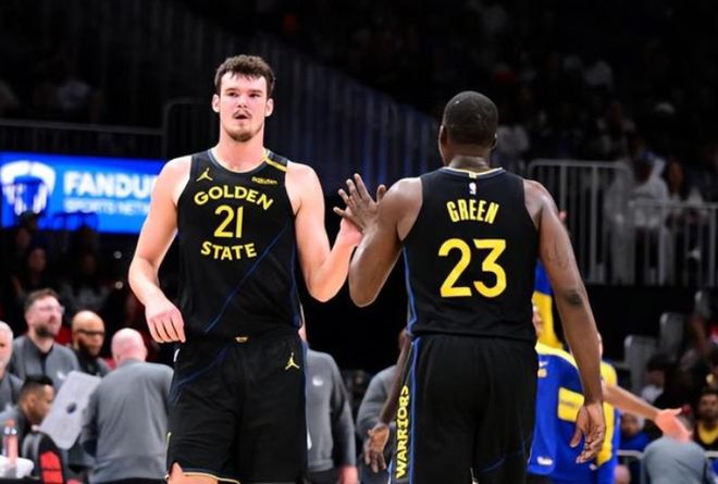 今天比赛,首发阵容方面,勇士队这边,库里继续缺阵,科尔排出的最新首发五人组为:波杰姆斯基、乔纳森-库明加、吉米-巴特勒、昆滕-波斯特、德雷蒙德-格林;步行者这边,首发阵容则为:安德鲁-内姆布哈德、本-谢泼德、贾雷斯-沃克、杰-胡夫、以赛亚-杰克逊。
